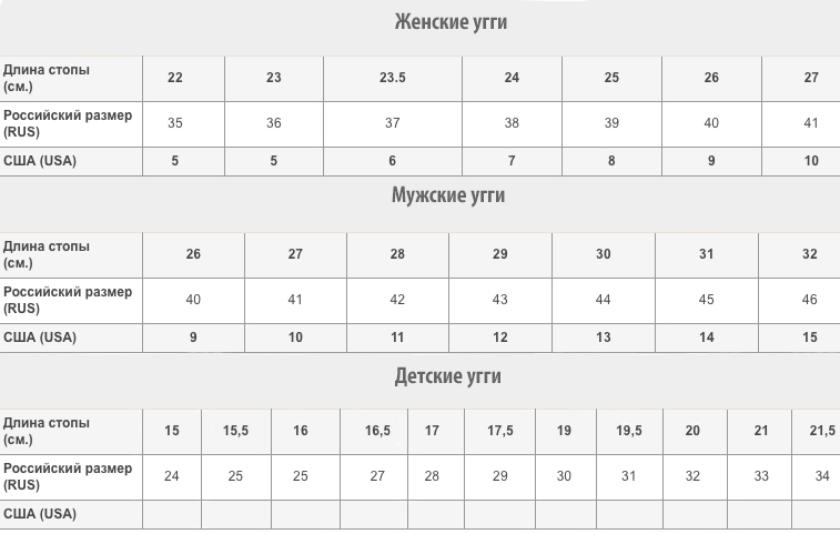 Как же правильно определить размер сапожек UGG Australia?